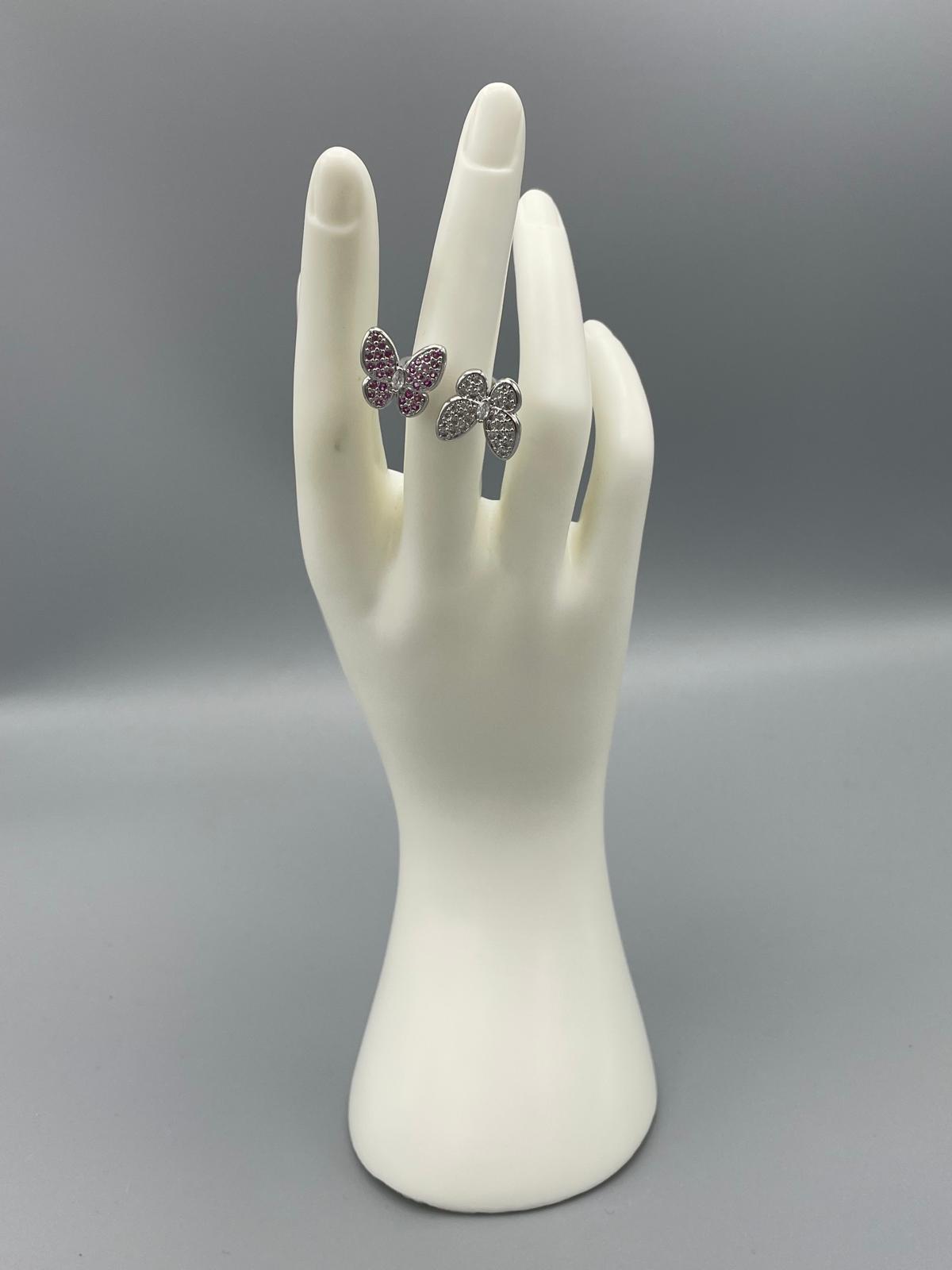 Flutter and sparkle with the Hilary Ring! This silver ring features two delicate butterflies for a playful touch. Perfect for adding a touch of fun to any outfit.
