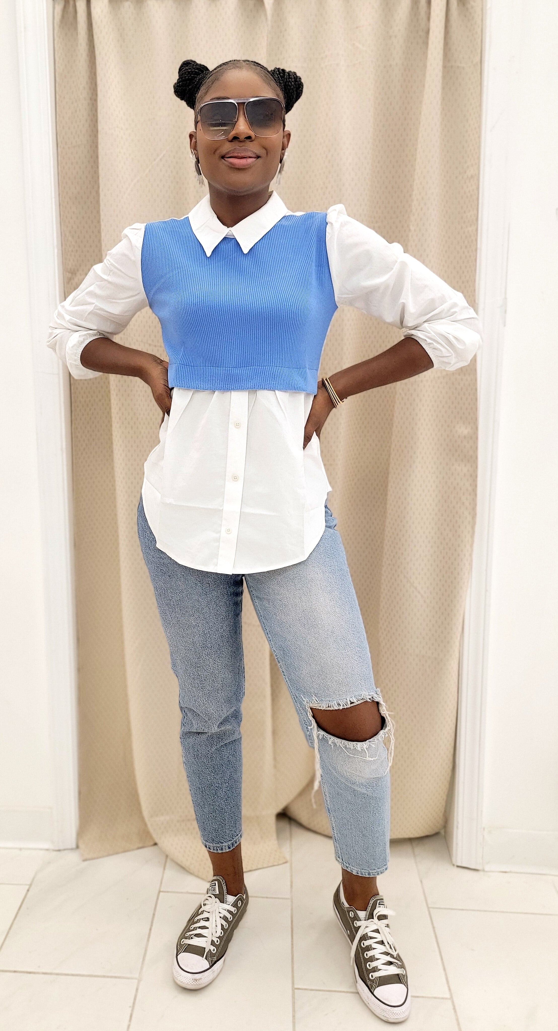 DEST BLU is a stylish long sleeve top featuring a blue and white design. Crafted from breathable material with a relaxed fit, this piece will keep you comfortable throughout the day. Perfect for any occasion. ...